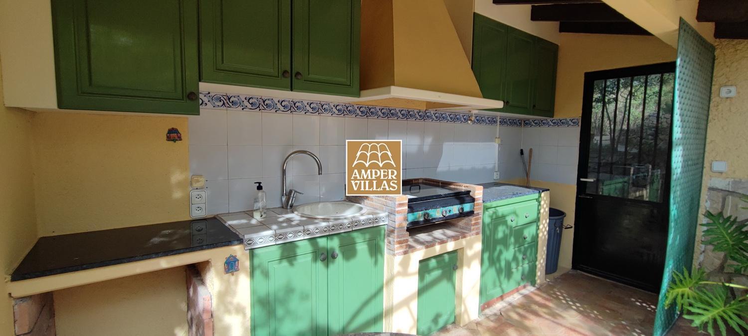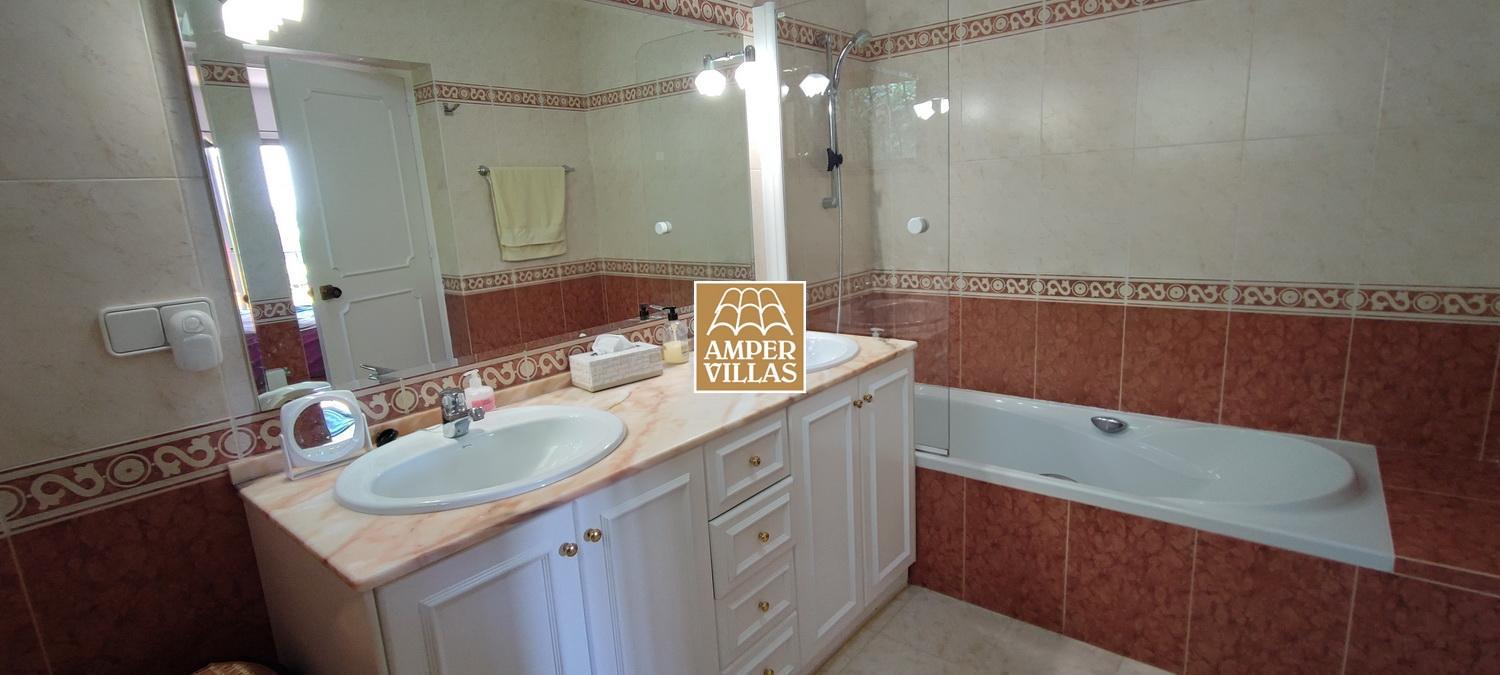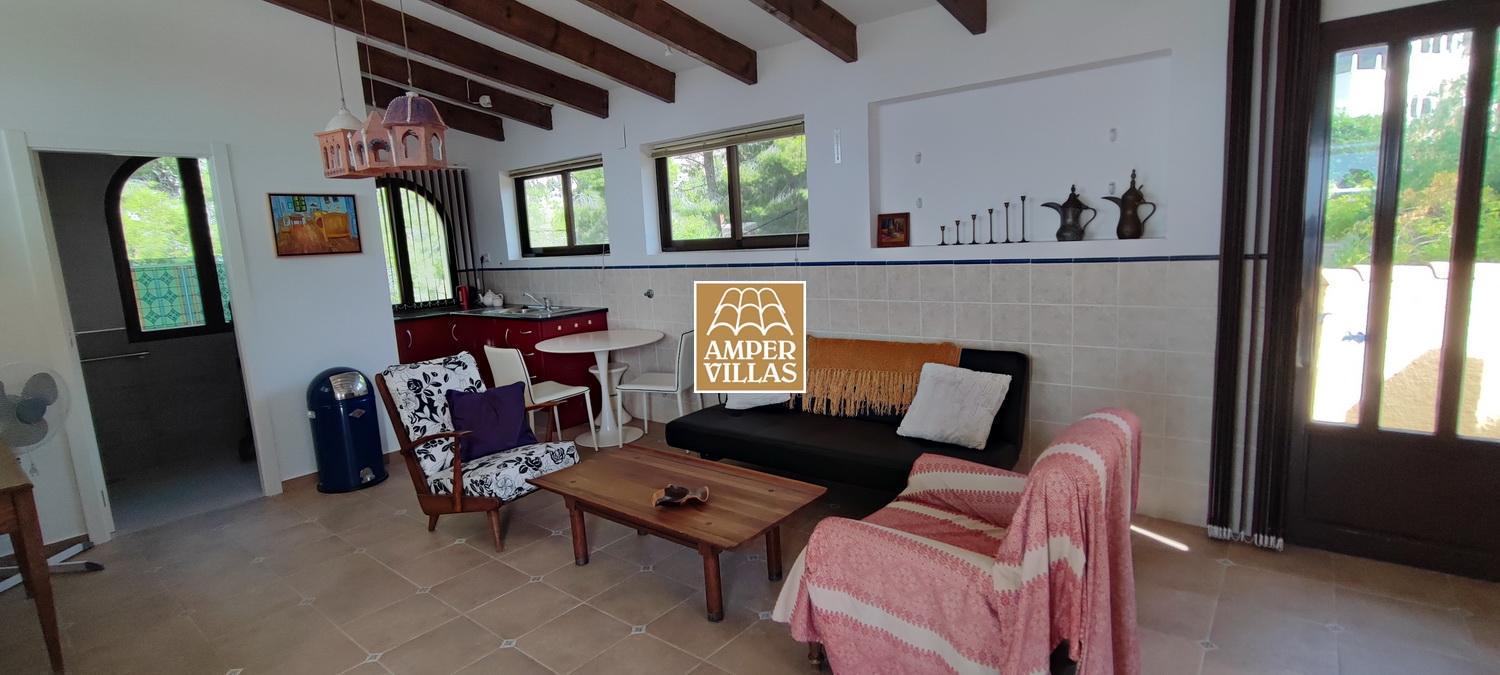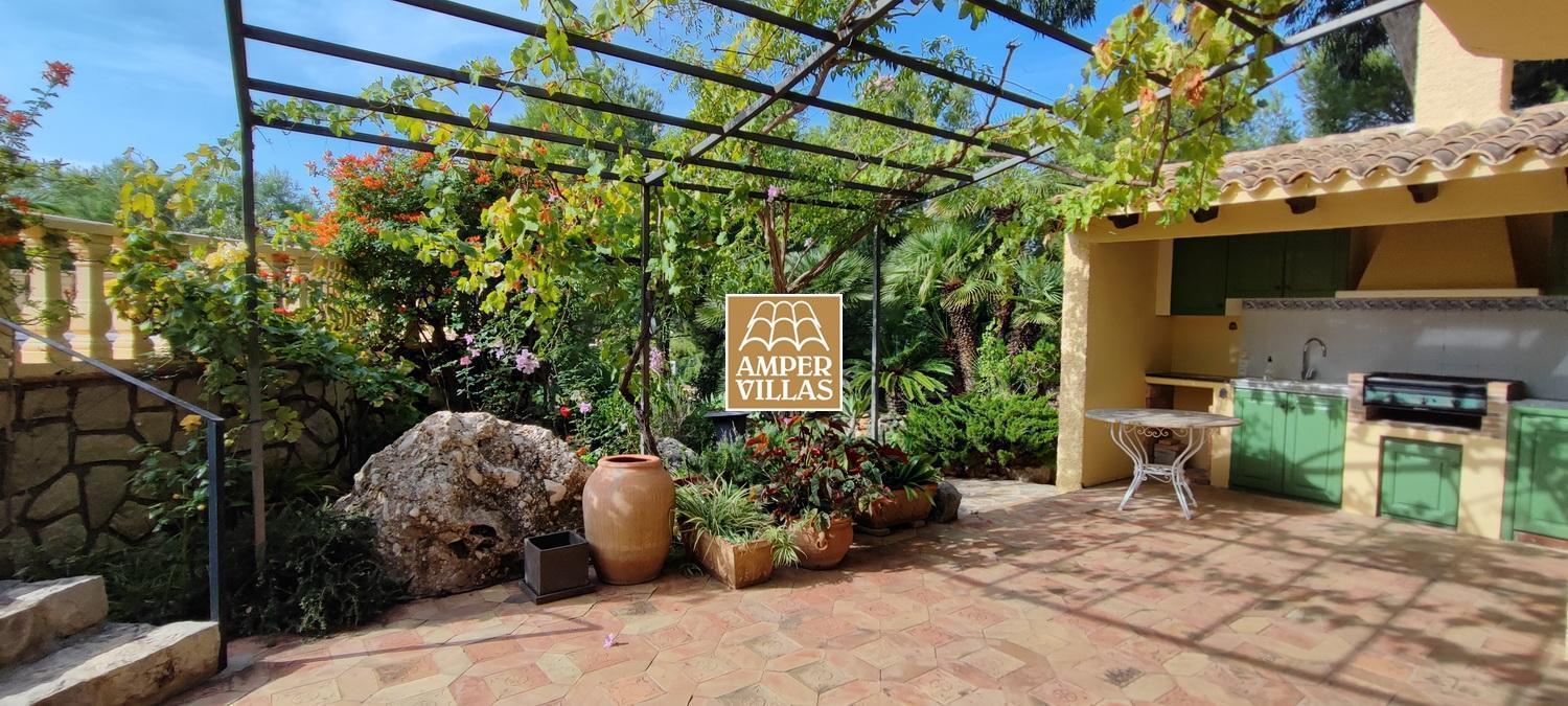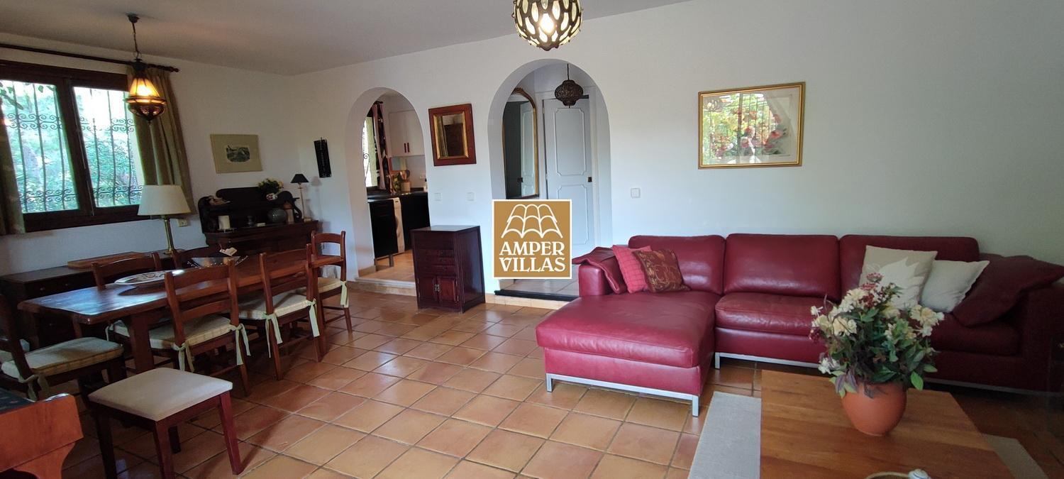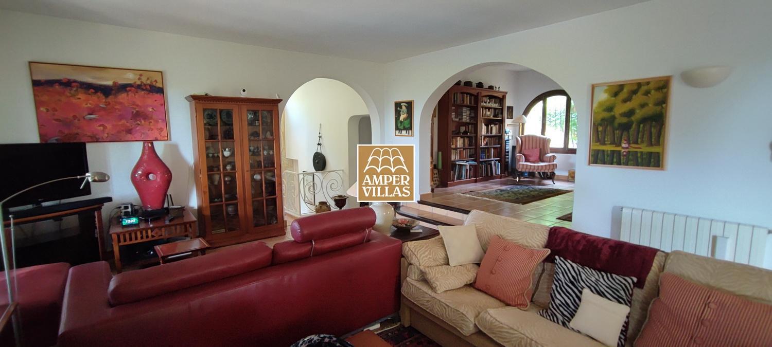 Beautiful Mediterranean villa in the best location of Sierra Altea Golf, with a large plot and an exceptional garden. The distribution is as follows: entrance, large living room with fireplace leading to a beautiful covered terrace, dining room and large kitchen with dining area, 2 bedrooms and 2 bathrooms, one of which is en-suite. On the interior level there is an independent guest apartment with a living-dining room with an open-plan kitchen, 2 bedrooms each with its own bathroom en-suite and access to a terrace where the outdoor kitchen and the pool, surrounded by terraces, are located. On the upper level there is an independent studio with a american kitchen and bathroom and a beautiful terrace with spectacular views of the Bay of Altea and the mountains. Garage and carport, storage room, central heating, south orientation and a lot of privacy.
