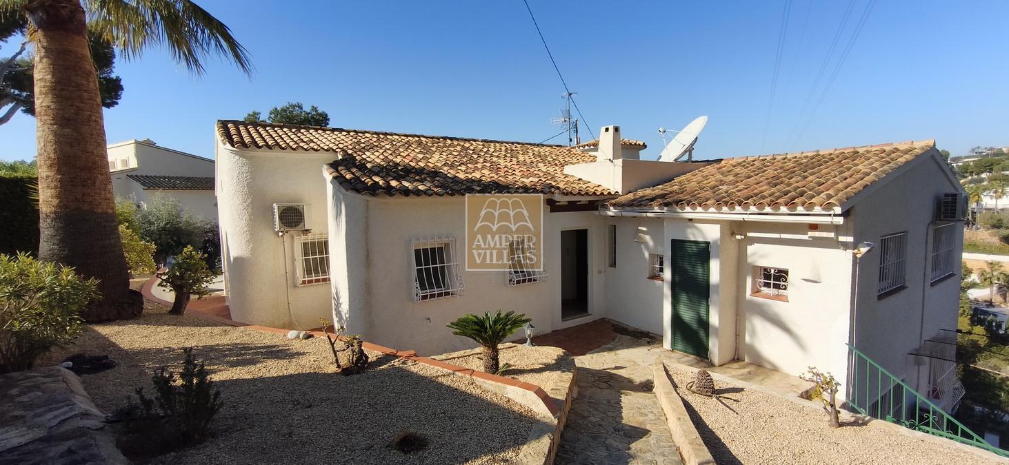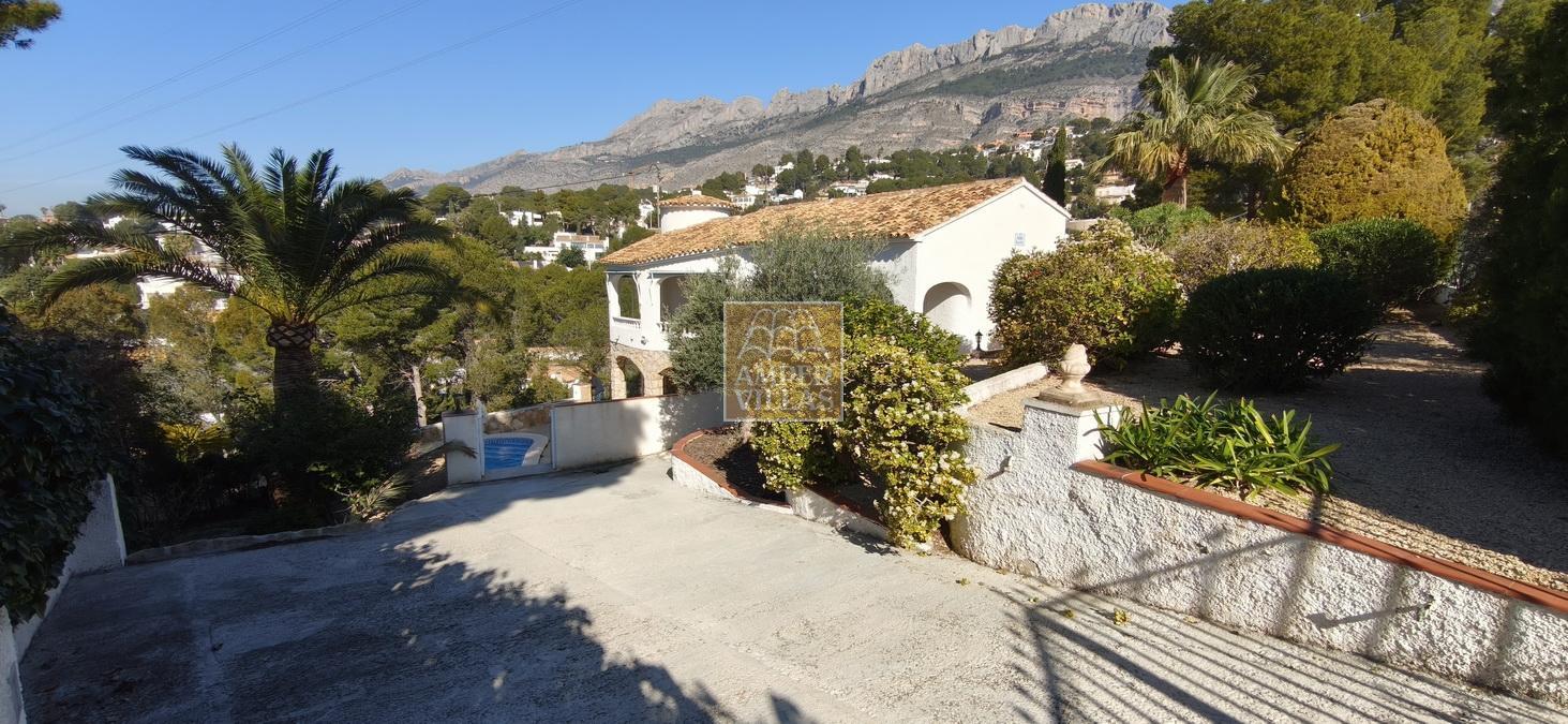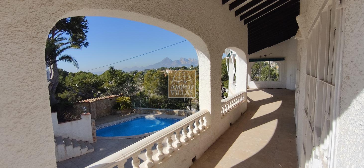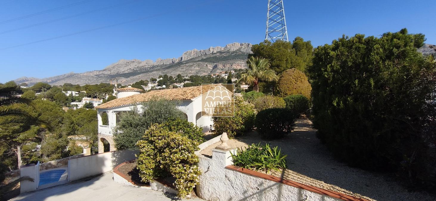 Pleasant villa with on the main floor: entrance hall, living room, dining room, large open kitchen, laundry room, master bedroom with dressing room and en-suite bathroom, large covered terrace. On the lower floor, connected by an internal staircase, there is another living room, 3 bedrooms and a full bathroom. From this floor there is access to another large covered terrace and the swimming pool. The house has gas central heating, air conditioning, a beautiful Mediterranean garden and unobstructed views of the Sierra Bernia.
