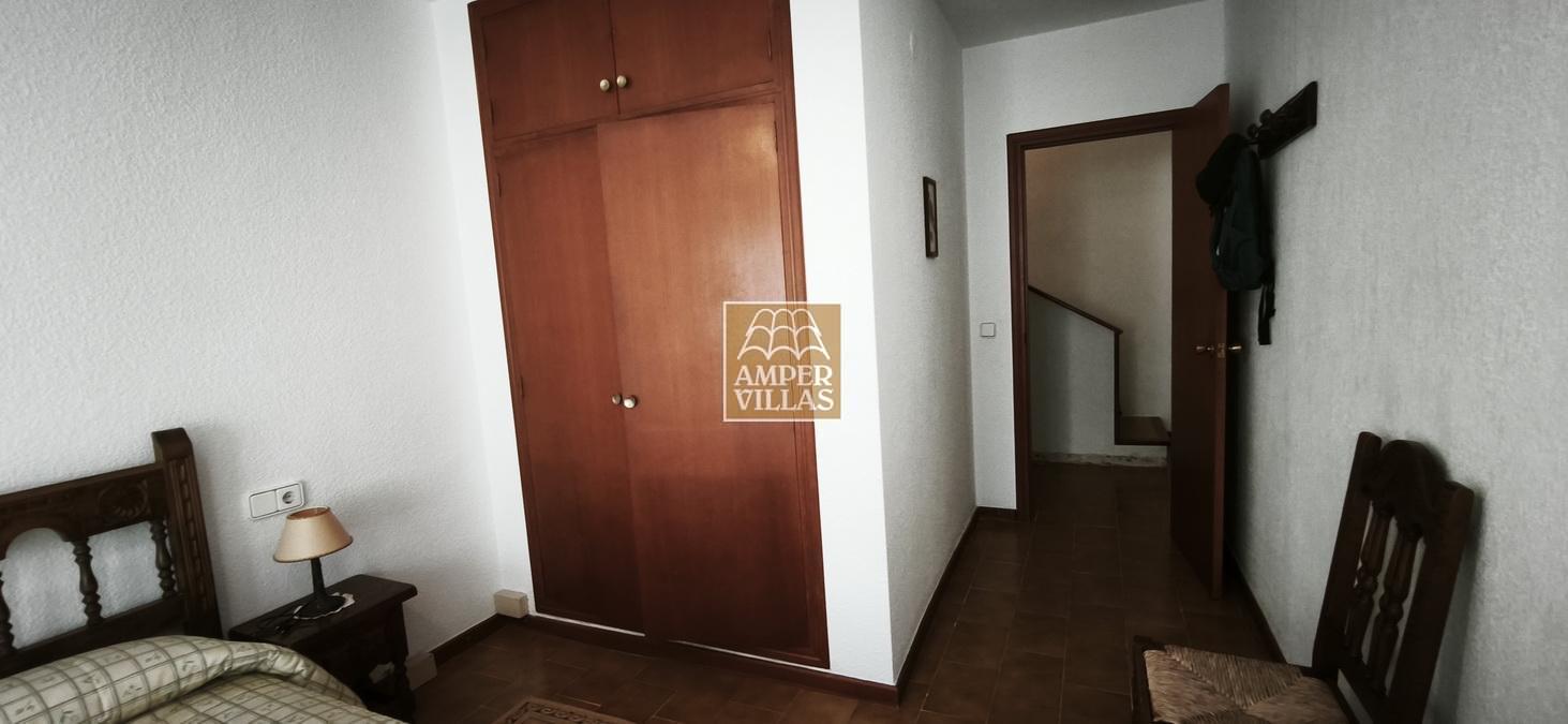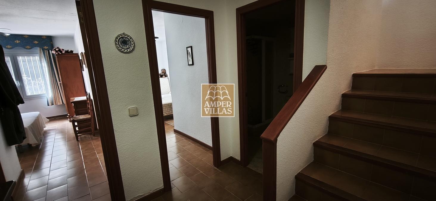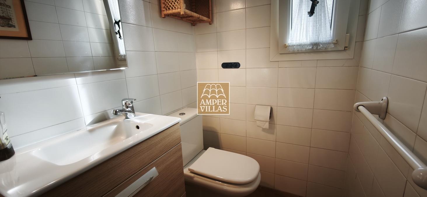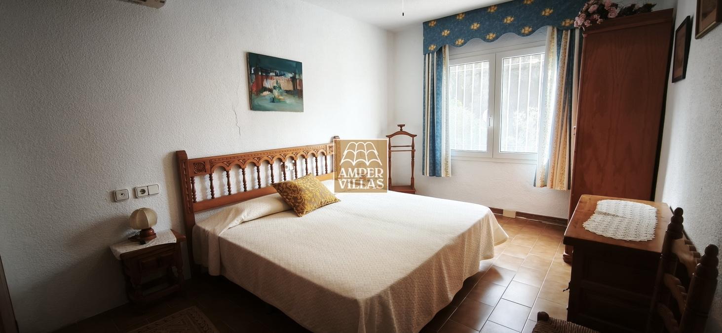 A cosy and spacious corner bungalow, close to the golf club, featuring an entrance hall, a living-dining room opening onto a terrace with lovely views of the greenery, the swimming pool and Altea Bay, a separate kitchen, a guest toilet and a separate utility room. On the ground floor there are 2 bedrooms, 2 bathrooms and a further storage room. On the upper floor there is a sun terrace. The property has hot/cold air conditioning and a fireplace. There is a parking space in front of the house, a communal swimming pool and a tennis court.