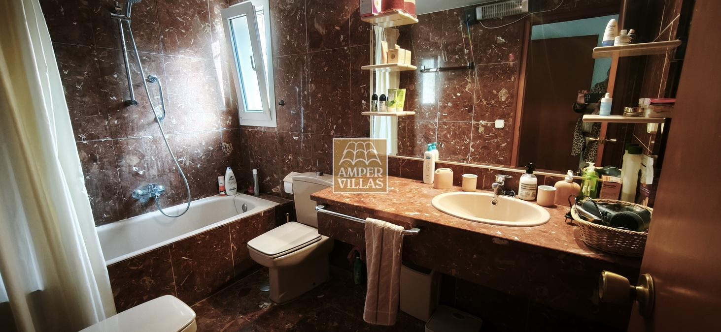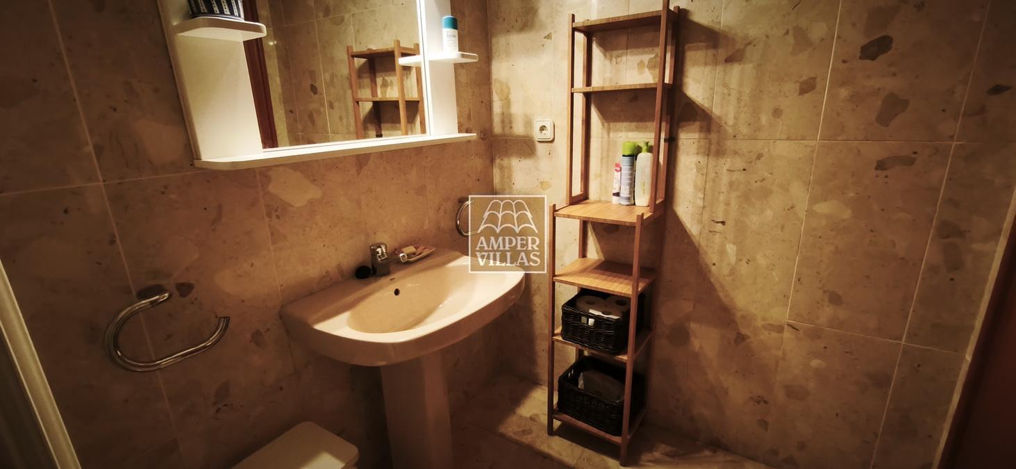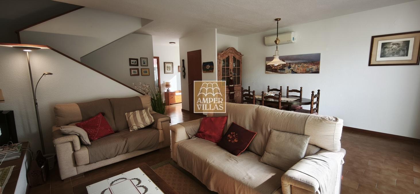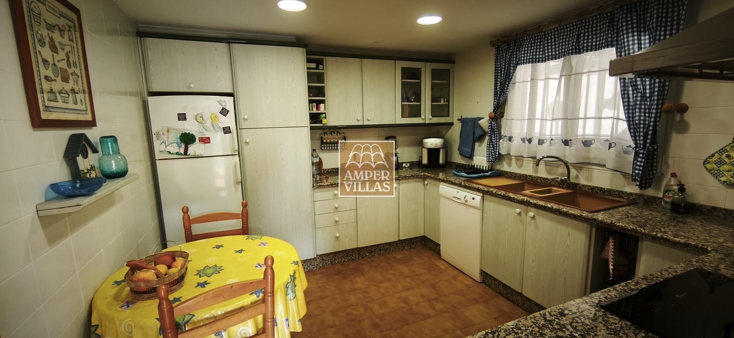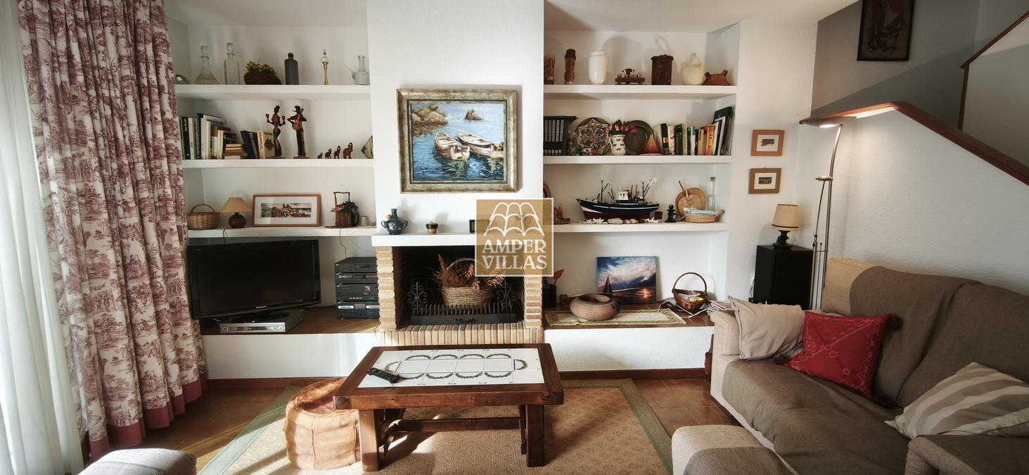 A cosy and spacious corner bungalow, close to the golf club, featuring an entrance hall, a living-dining room opening onto a terrace with lovely views of the greenery, the swimming pool and Altea Bay, a separate kitchen, a guest toilet and a separate utility room. On the ground floor there are 2 bedrooms, 2 bathrooms and a further storage room. On the upper floor there is a sun terrace. The property has hot/cold air conditioning and a fireplace. There is a parking space in front of the house, a communal swimming pool and a tennis court.