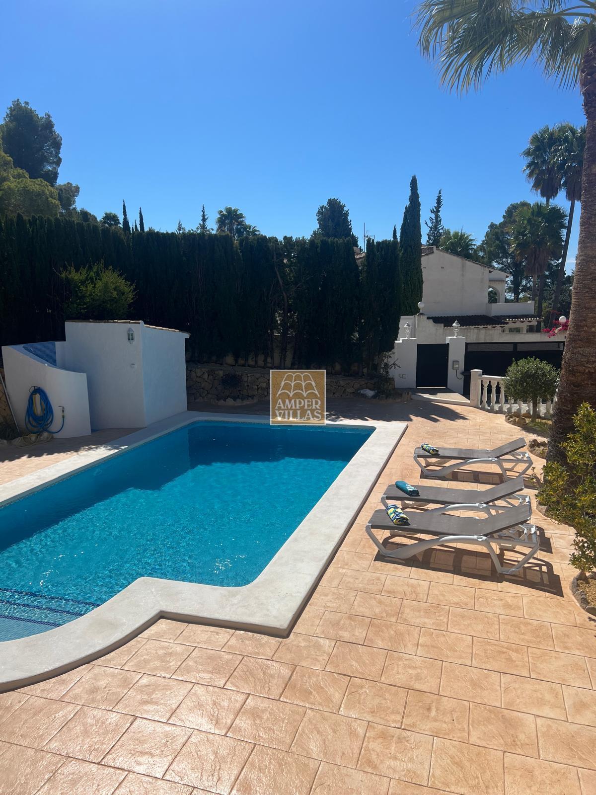 Beautiful villa with 3 bedrooms, 2 bathrooms, air conditioning, a fully equipped kitchen, a private pool with a barbecue, and a large plot. Garage