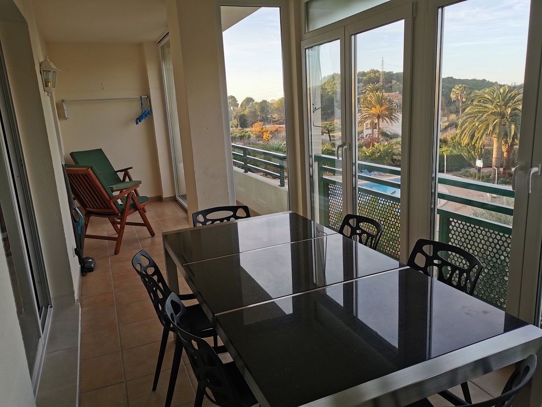 APARTMENT LOCATED AT THE CENTER OF THE TOWN, WALKING DISTANCE TO CAFER, RESTAURANTS, APOTHECKE, SUPERMARKETS, BANKS, BUS AND TAXI UNDER THE FLAT. COMPLETELY EQUIPED AIRCO , INTERNET, SATELITE TV, OPEN AND CLOSED TERRACE, POOL FOR CHILDREN AND ADULTS