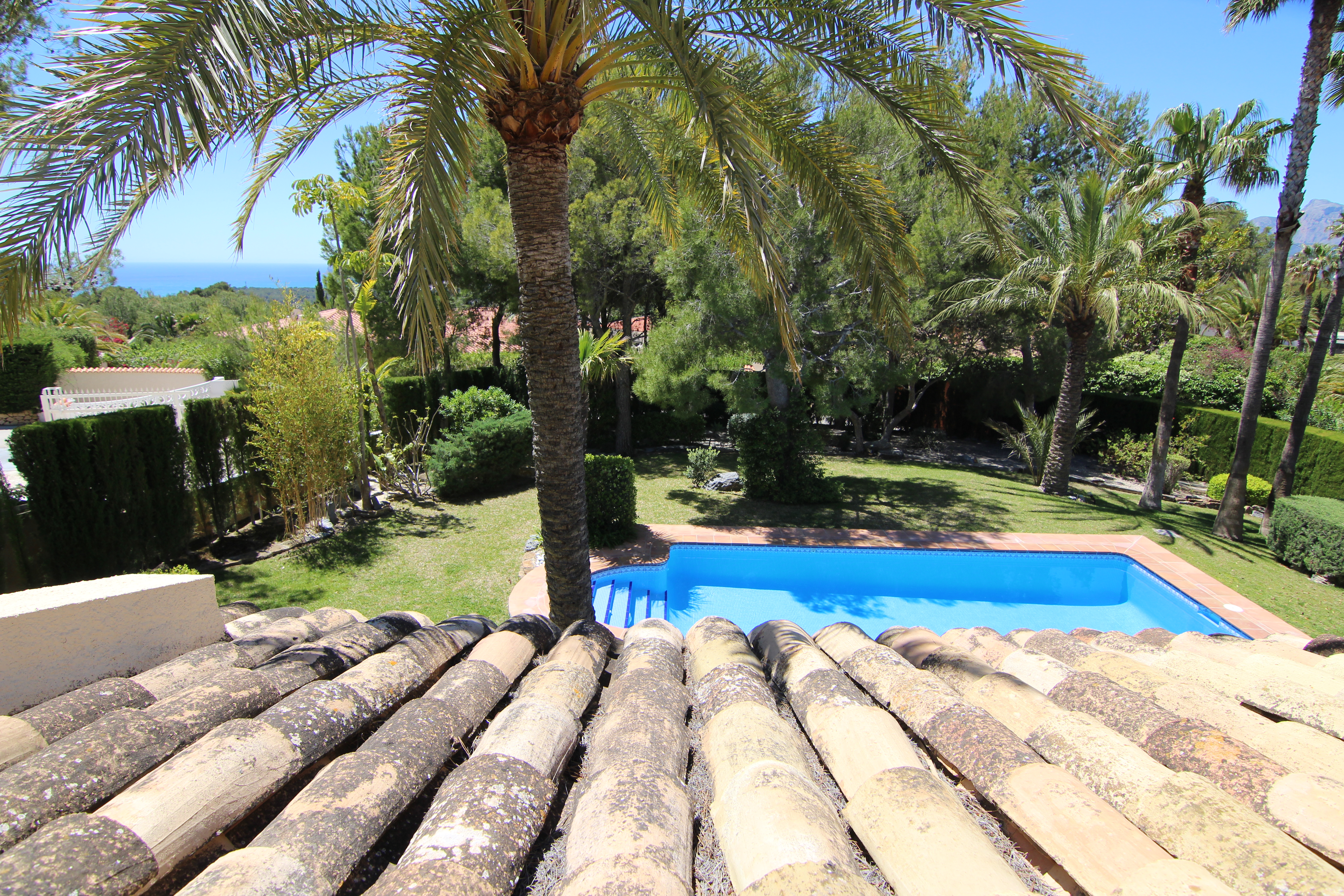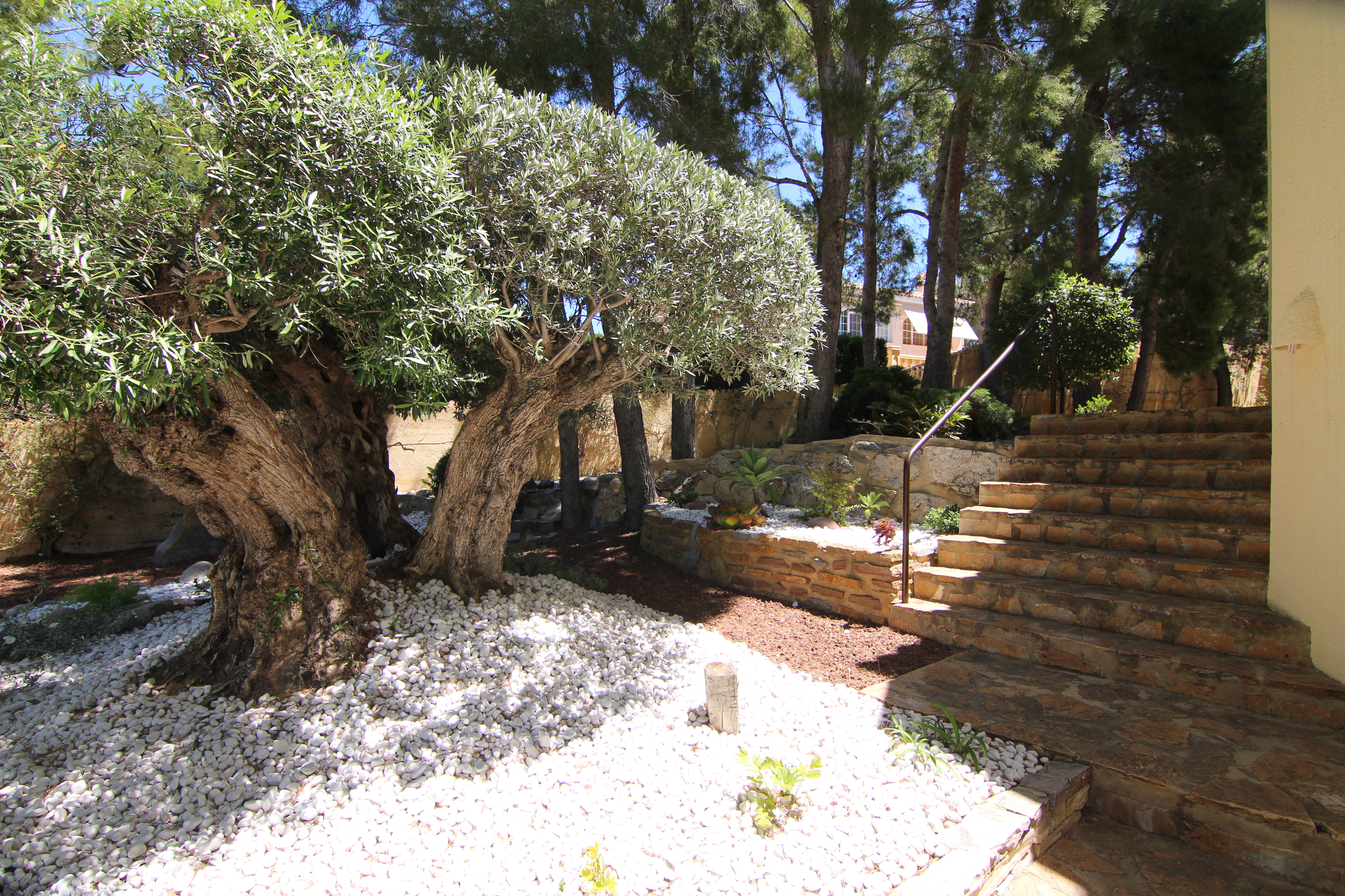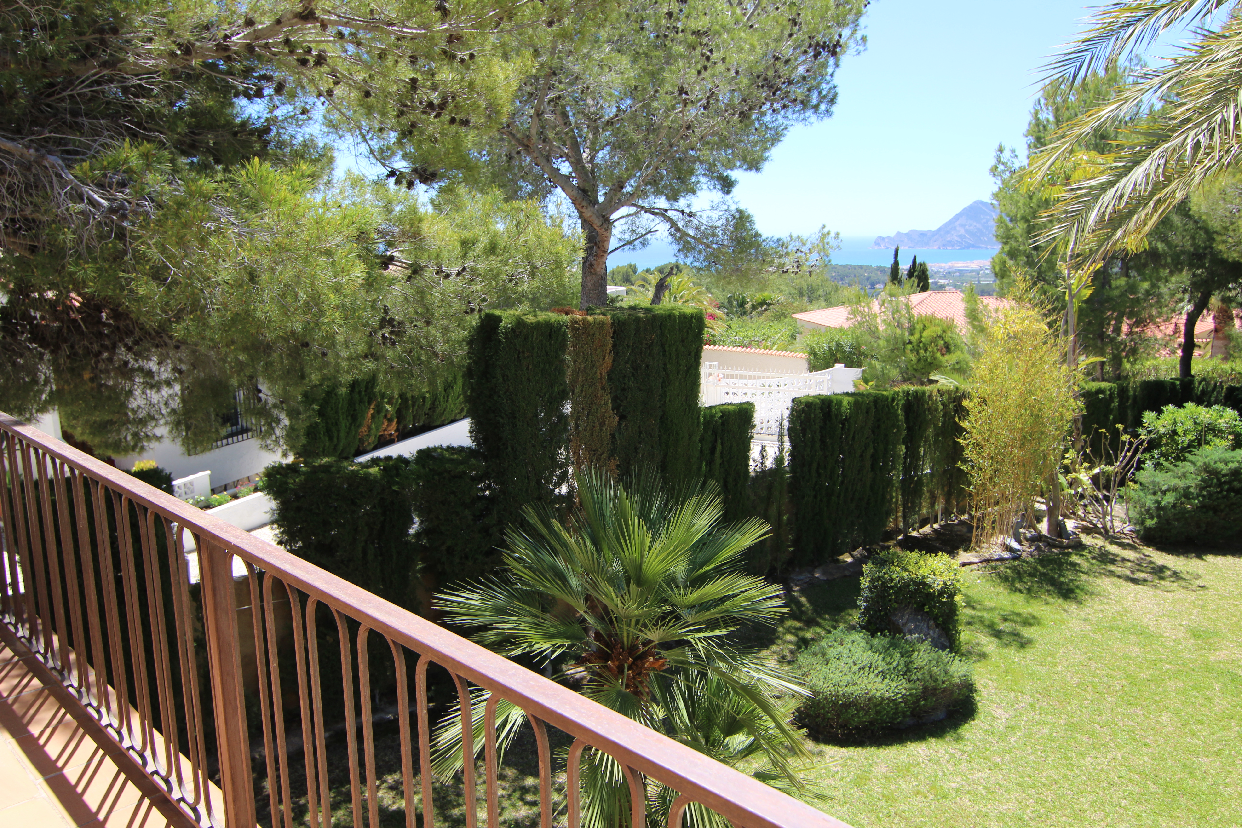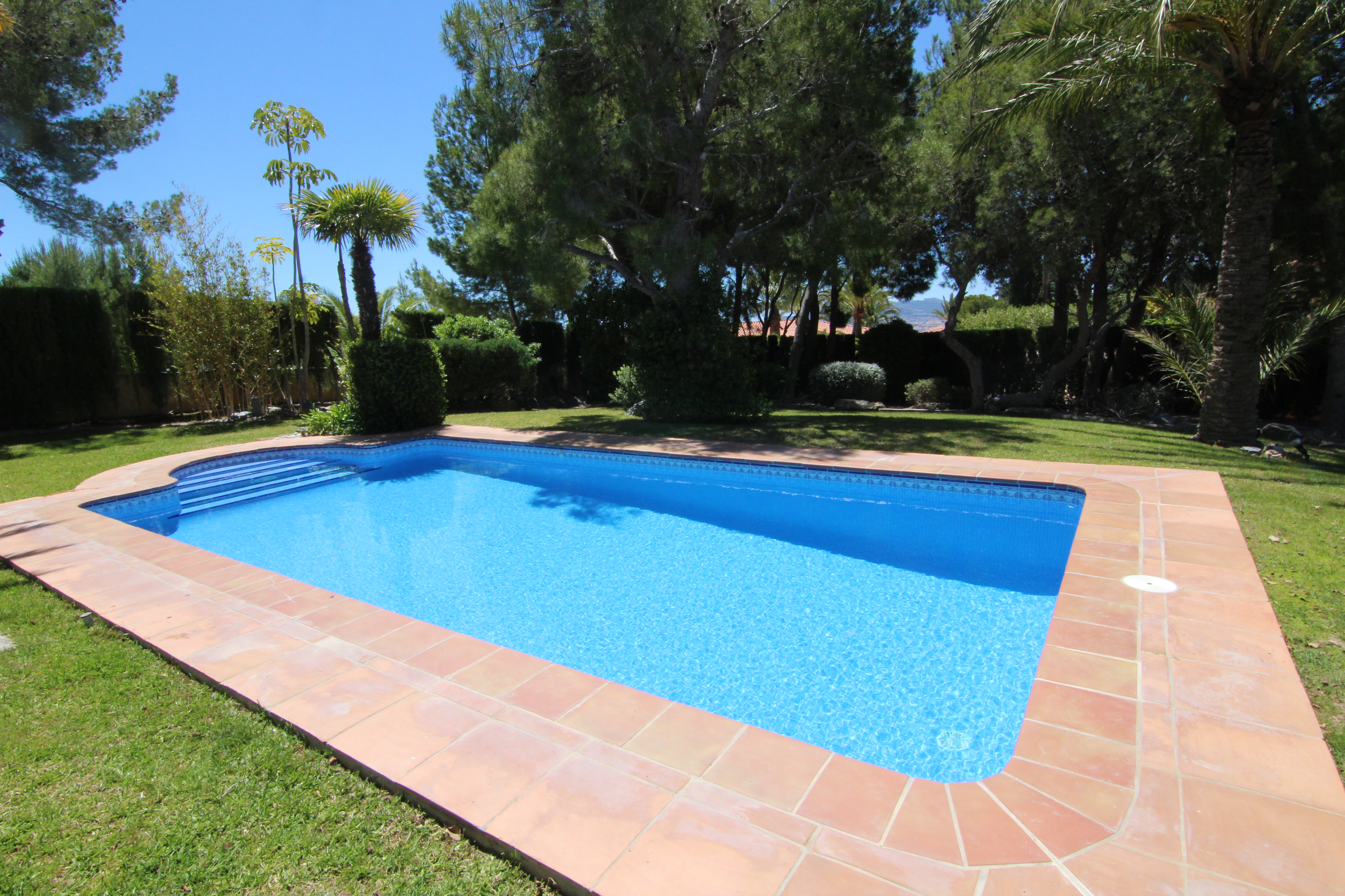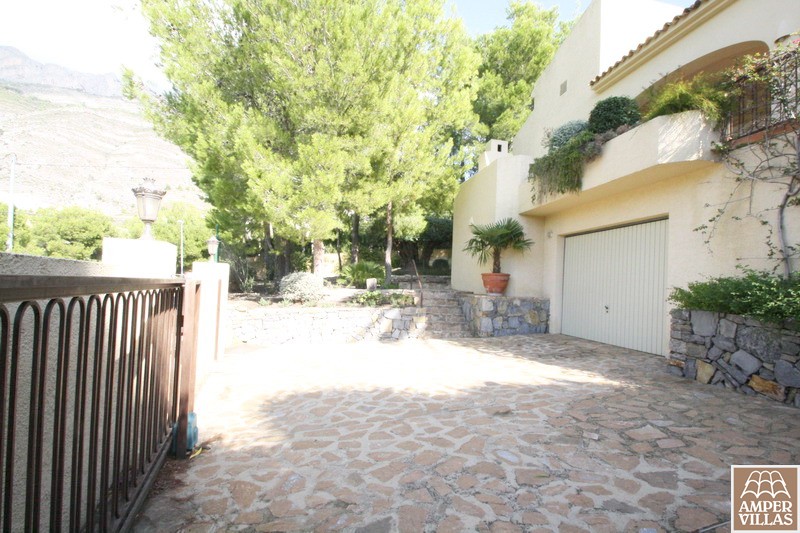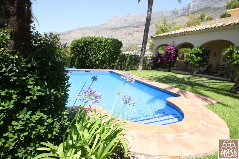 Luxury villa with private pool for a fabulous holiday near the golf course Don Cayo with Mediterranean garden. Villa with two floors, on the first floor living room with access to the pool, 2 bedrooms, bathroom with shower, fully fitted kitchen with storage room with washing machine and dryer. On the first floor, solarium with beautiful views of the mountains and the church of Altea and master bedroom with bathroom with bath and shower ensuite. Living room and bedrooms with air conditioning and fans with remote control. Automatic blinds. Garage for one car and parking, automatic access door to the house.