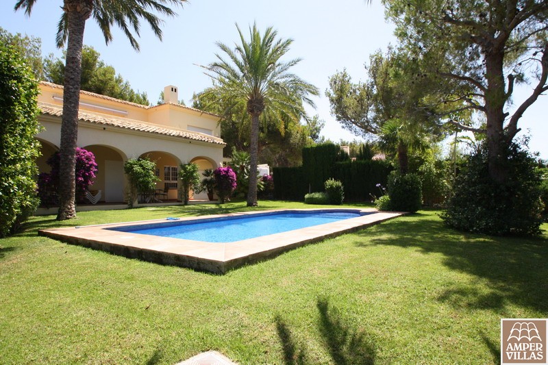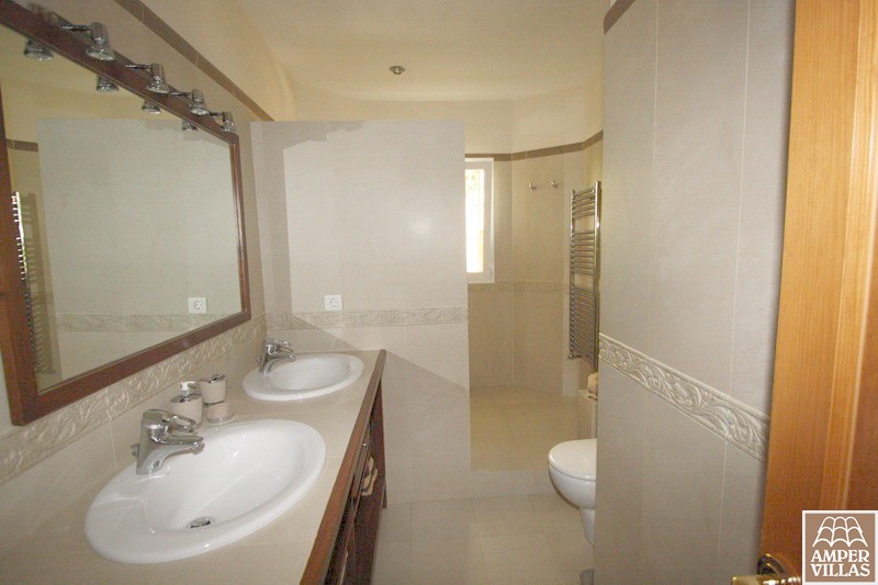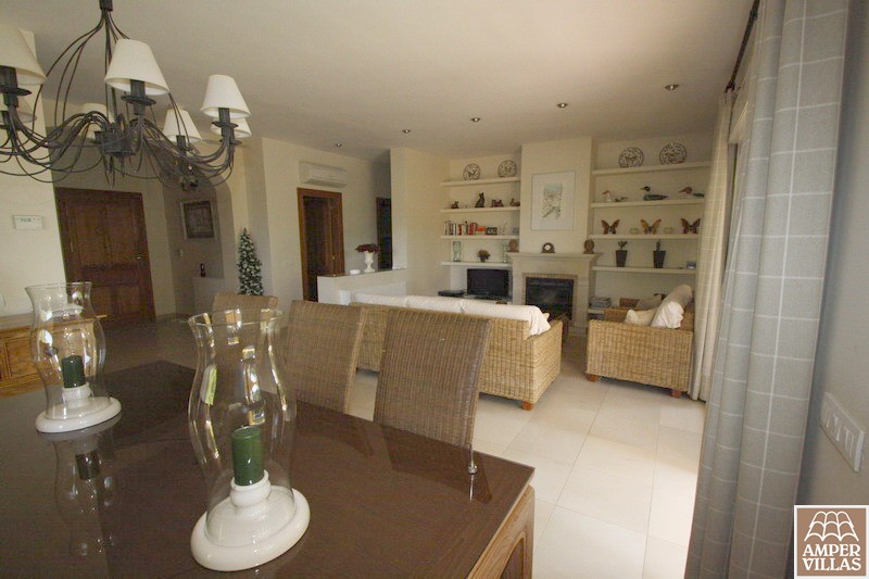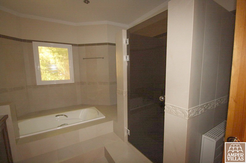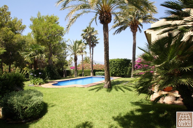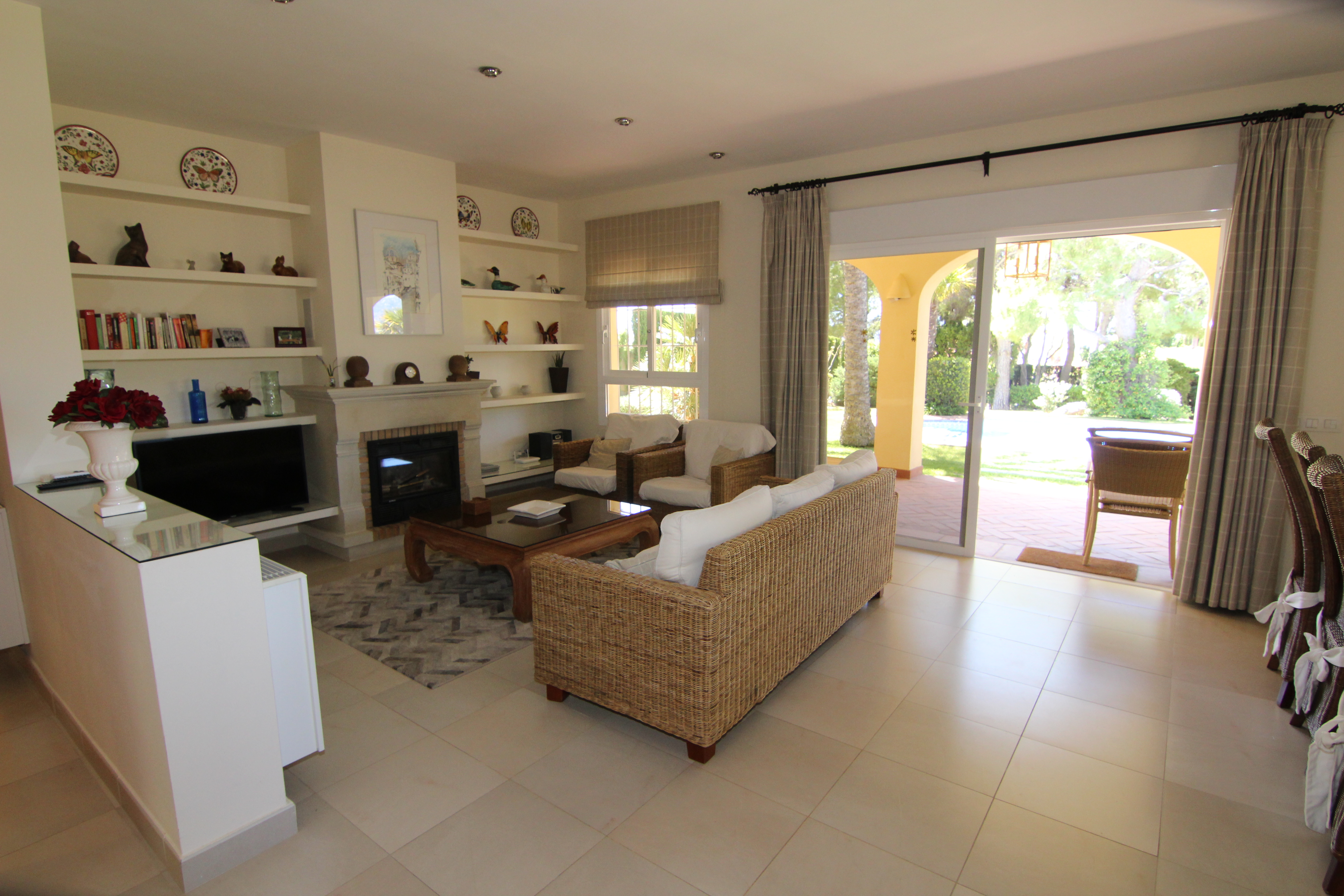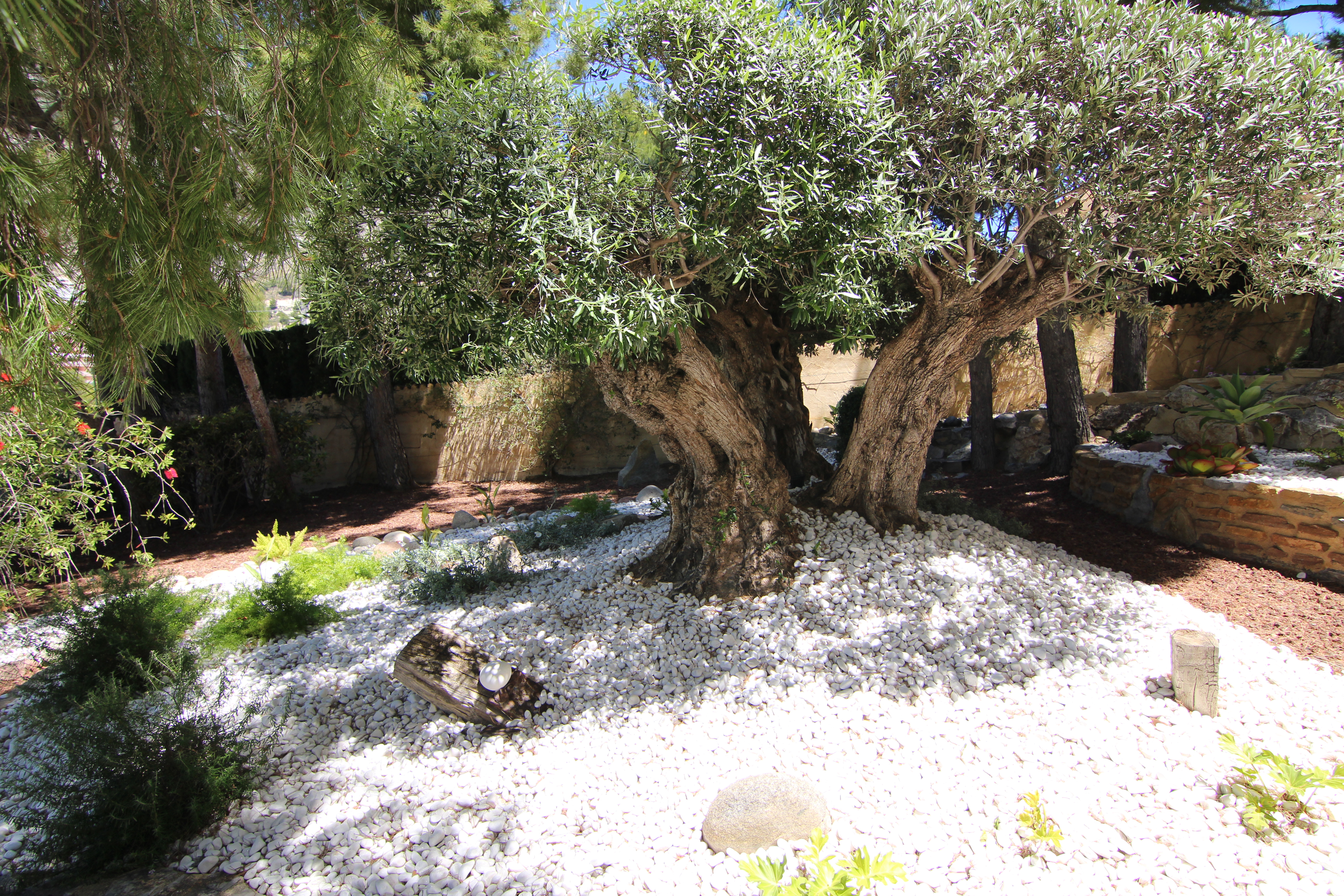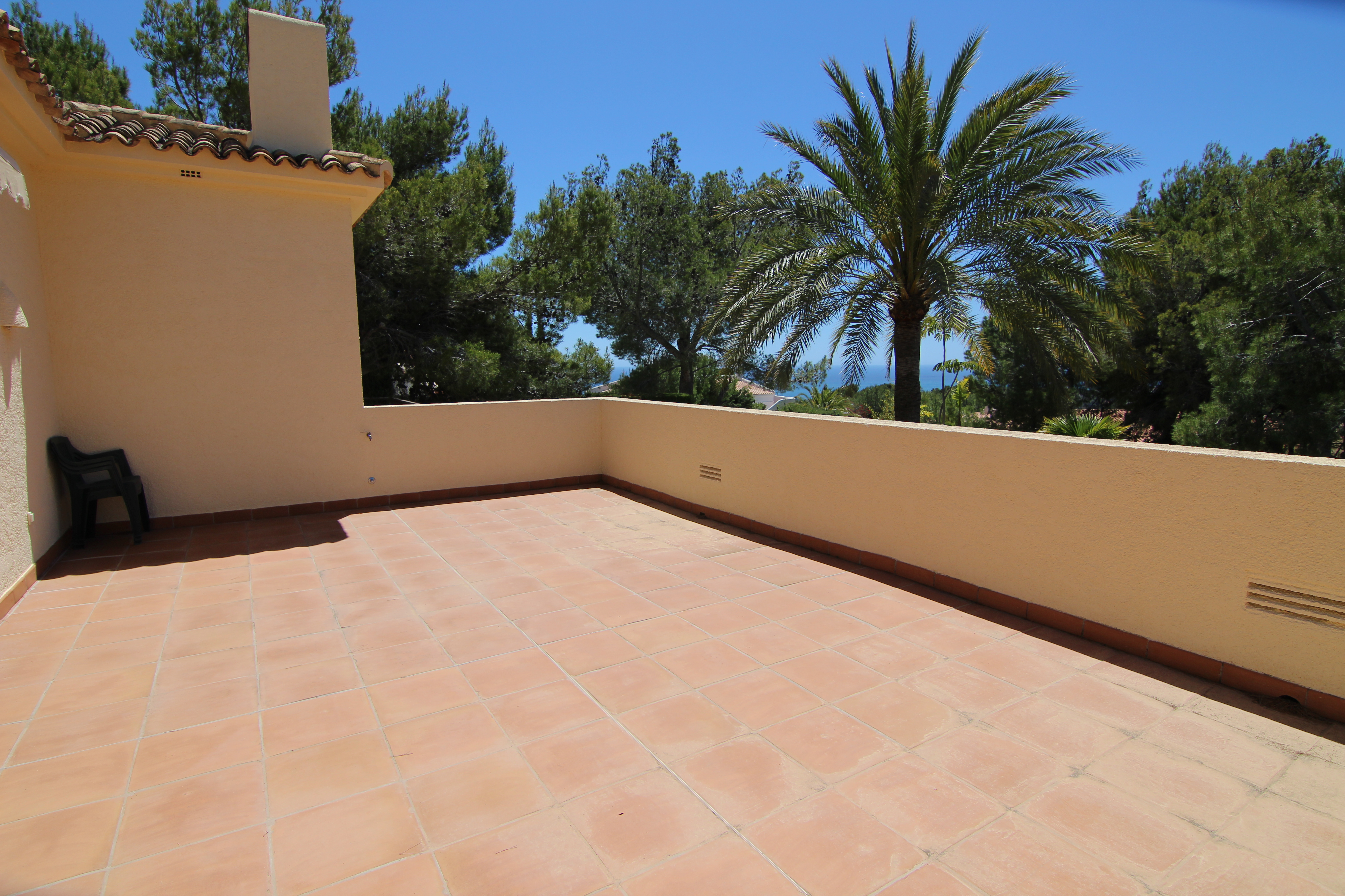 Luxury villa with private pool for a fabulous holiday near the golf course Don Cayo with Mediterranean garden. Villa with two floors, on the first floor living room with access to the pool, 2 bedrooms, bathroom with shower, fully fitted kitchen with storage room with washing machine and dryer. On the first floor, solarium with beautiful views of the mountains and the church of Altea and master bedroom with bathroom with bath and shower ensuite. Living room and bedrooms with air conditioning and fans with remote control. Automatic blinds. Garage for one car and parking, automatic access door to the house.
